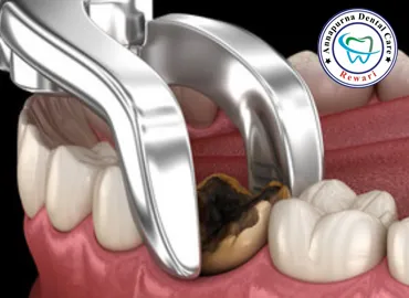 An extraction means to have a tooth removed, usually because of disease, trauma or crowding.