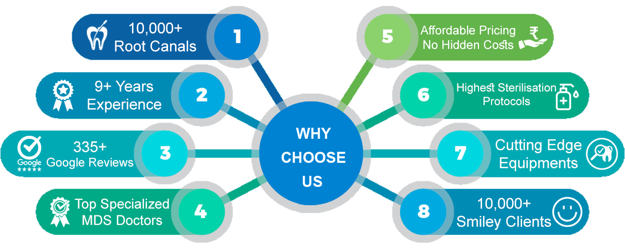 We are best known for : Microscopic Root Canal Treatment, Dental Implants, Crown and Bridges, Wisdom Tooth Extraction.